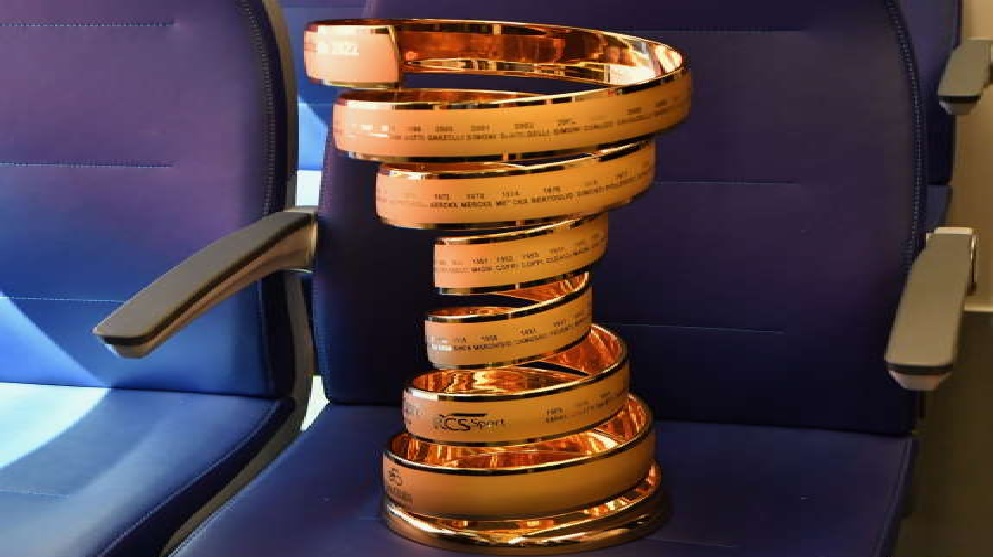 Il Trofeo Senza Fine, che sarà consegnato al vincitore del Giro d’Italia 2022, ha viaggiato oggi in Sicilia su un convoglio con una livrea rosa in onore della più prestigiosa gara ciclistica italiana. Il viaggio del Trofeo a bordo di un treno del trasporto regionale è una delle iniziative di Trenitalia per il Giro d’Italia, di cui è Official Green Carrier.