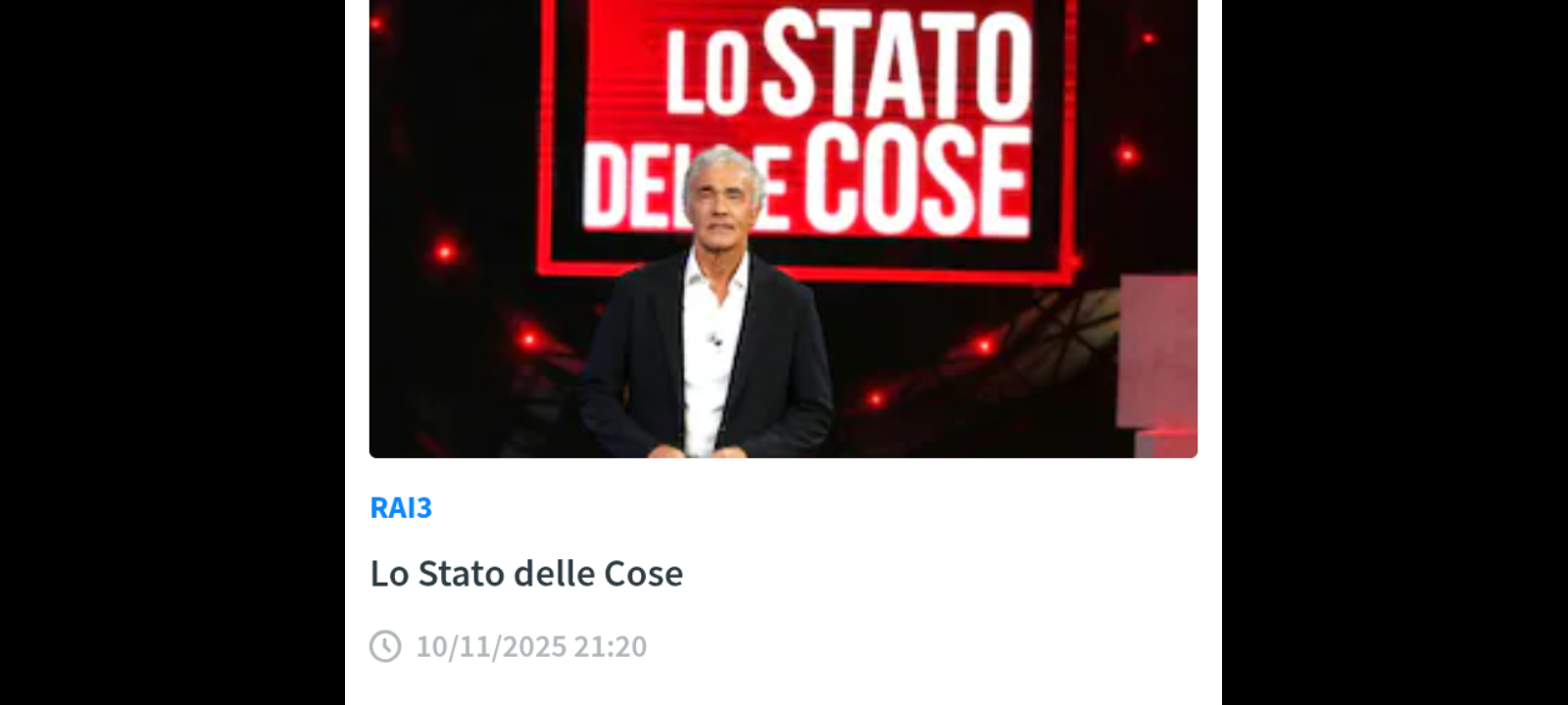 ‘In apertura di puntata torna Michele Santoro per commentare i principali temi dell’attualità; a seguire, il leader di Avs Nicola Fratoianni e il condirettore di Libero Pietro Senaldi si confronteranno sulla politica italiana; si tornerà, poi, sul delitto di Garlasco con un approfondimento che vede protagonisti quei magistrati che nel 2017 chiesero e decisero l’archiviazione di Andrea Sempio. Non solo l’ex pm indagato Mario Venditti, ma anche la ex pm Giulia Pezzino e il gip Fabio Lambertucci… che ruolo hanno avuto? E poi un focus sull’ora della morte di Chiara Poggi… secondo indiscrezioni relative alla nuova inchiesta della Procura di Pavia, infatti, il delitto potrebbe essere stato compiuto in un orario diverso da quello cristallizzato nella sentenza di condanna di Alberto Stasi. A parlarne ci sarà Stefano Vitelli, il magistrato che assolse Alberto Stasi in primo grado’. Oggi lunedì 10 novembre, appuntamento con Massimo Giletti e il suo programma “Lo Stato delle Cose”, che è iniziato in onda alle 21.20 su Rai3.