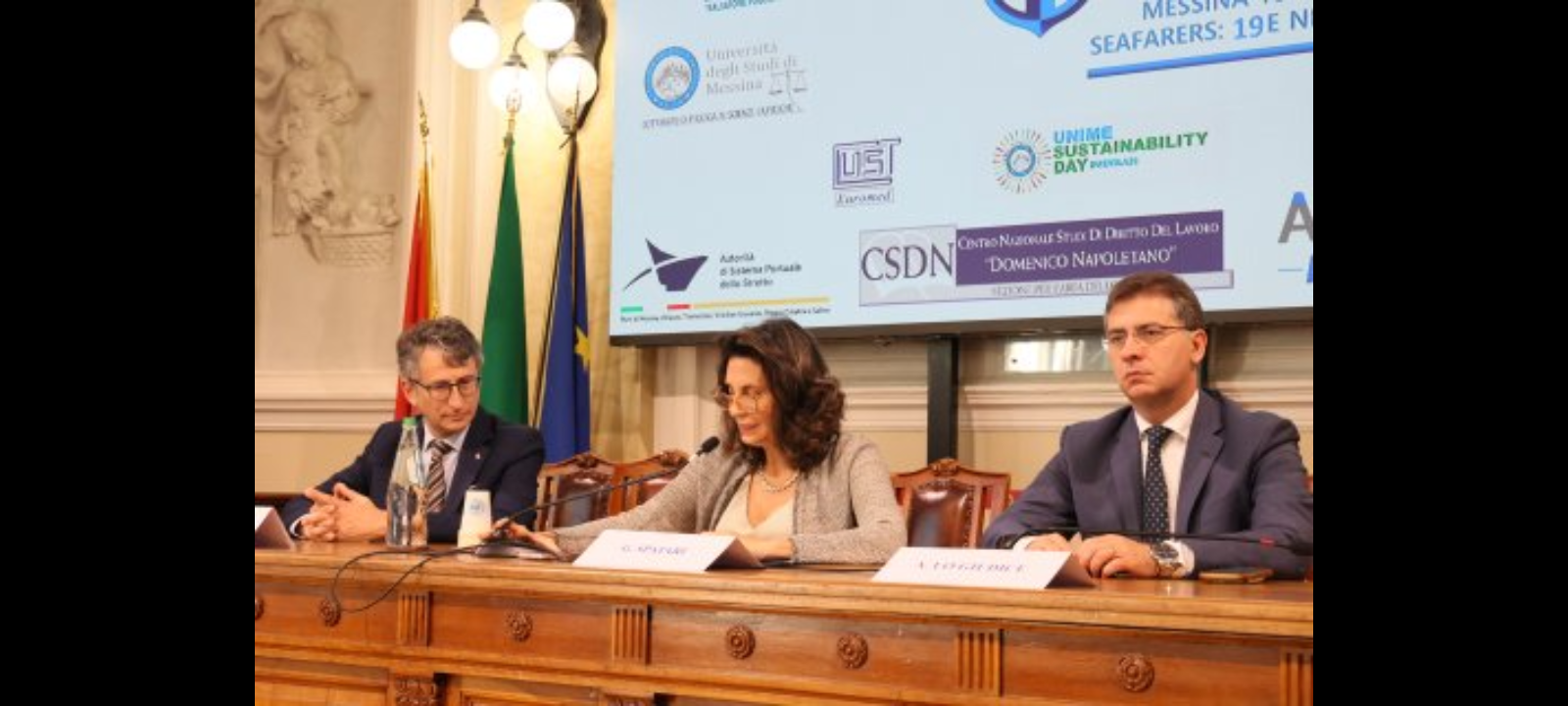 DOPO I SALUTI DELLA RETTRICE, PROF.SSA GIOVANNA SPATARI, DEL DOTT. FEDERICO BASILE, SINDACO DI MESSINA, DELL’AVV. FRANCESCO RIZZO, COMMISSARIO DELL’AUTORITÀ DI SISTEMA PORTUALE DELLO STRETTO, E DEL DIRETTORE DEL DIPARTIMENTO DI GIURISPRUDENZA, PROF. ALESSIO LO GIUDICE, SONO INTERVENUTI ANCHE LA PROF.SSA CONCETTA PARRINELLO, COORDINATRICE DEL DOTTORATO IN SCIENZE GIURIDICHE, IL CV (CP) LUCIANO PISCHEDDA, COMANDANTE DELLA CAPITANERIA DI PORTO AMS MESSINA, LA PROF.SSA FRANCESCA PELLEGRINO, DIRETTRICE DEL CENTRO UNIVERSITARIO DI STUDI SUI TRASPORTI E LA PROF.SSA LOREDANA FERLUGA, DELEGATA DEL DIRETTORE DEL DIPARTIMENTO DI GIURISPRUDENZA ALLA PARITÀ DI GENERE