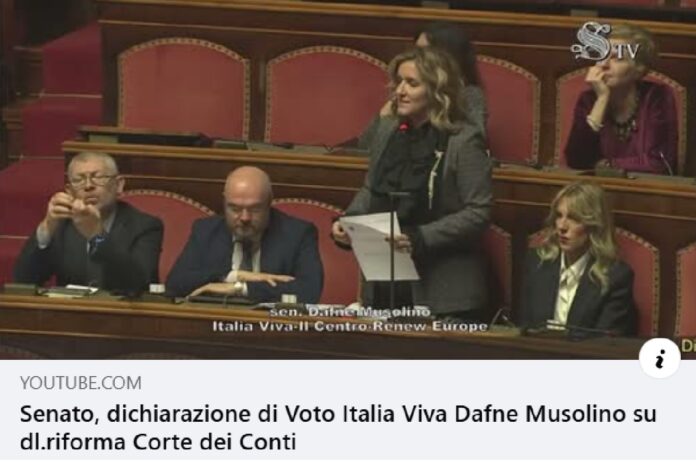 “La mia dichiarazione di voto per Italia Viva sulla Riforma della Corte dei Conti: Una riforma di cui il Paese aveva bisogno, ma come al solito approssimativa, pasticciata e che non risolve nessuno dei problemi”. Lo ha riferito ieri, sulla sua omonima Pagina Facebook, l’avvocato messinese, nonchè senatrice presso Palazzo Madama a Roma, afferente al ‘Gruppo di Italia Viva’, Dafne Musolino.