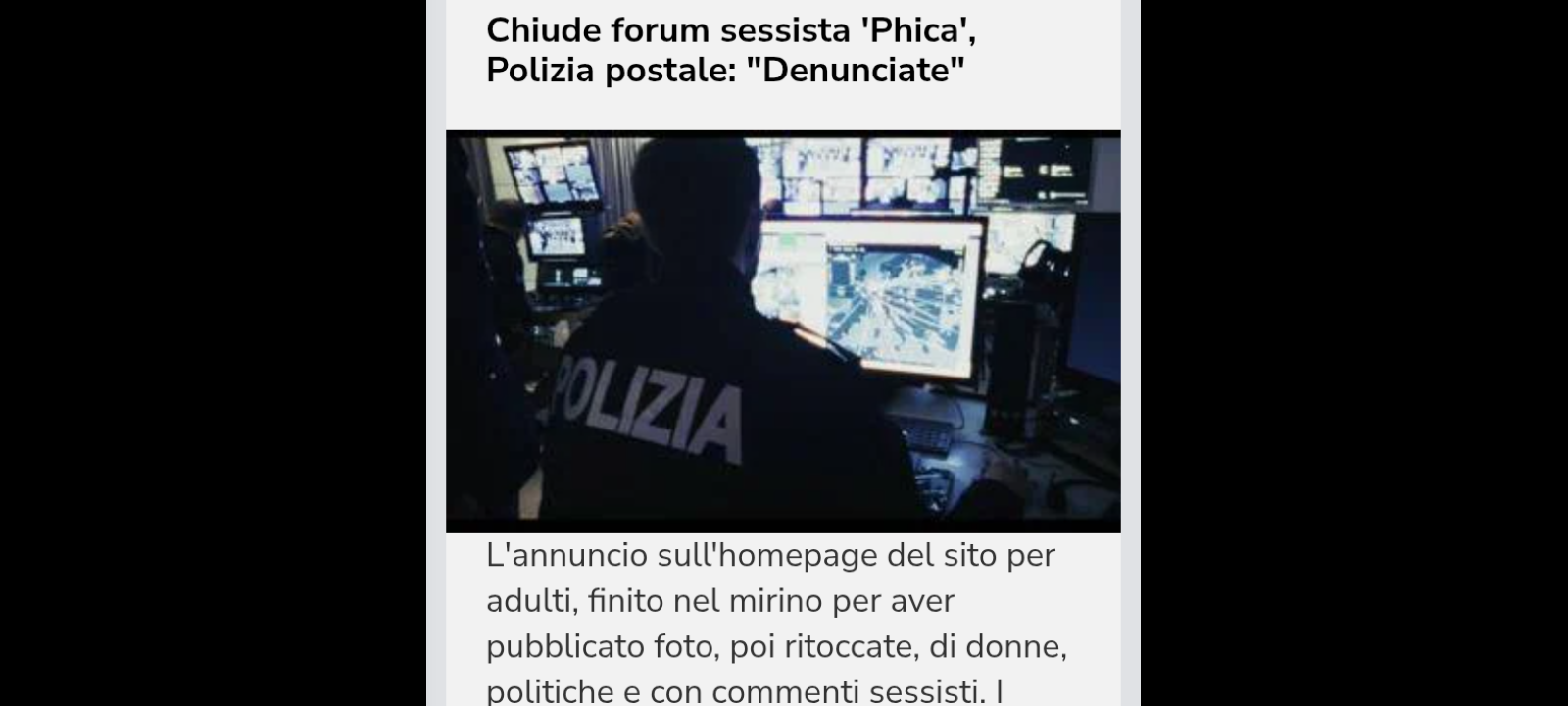 Anche dopo la chiusura del sito ‘Phica’, gli investigatori, che hanno già inviato una prima informativa alla Procura di Roma e si avviano a mandarne anche ad altre procure, sono al lavoro per individuare chi ha caricato le foto su diversi forum e portali. Continuano ad arrivare denunce alla polizia postale da parte di donne che hanno trovato proprie immagini intime in rete pubblicate senza il proprio consenso.