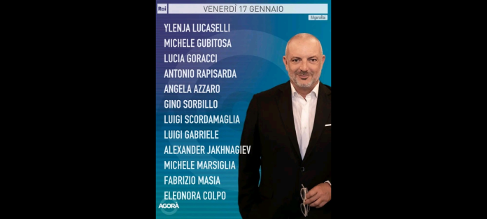 ‘La situazione a Gaza, tra i bombardamenti e le forti fibrillazioni politiche sulla tregua, attesa per domenica; politica interna, dal Consiglio Federale della Lega e il dibattito sul terzo mandato, al primo sì alla Camera sulla separazione delle carriere dei magistrati; la questione sicurezza alla vigilia delle manifestazioni del fine settimana a Bologna; un dibattito sull’aumento del prezzo del carburante e la ricaduta sul costo delle materie prime nella giornata nazionale della pizza; tornano inoltre, come ogni venerdì, i sondaggi di Fabrizio Masia’. Questi alcuni temi della puntata di “Agorà” che è iniziata in onda venerdì 17 gennaio alle 08.00 su Rai3… con la conduzione di Roberto Inciocchi.