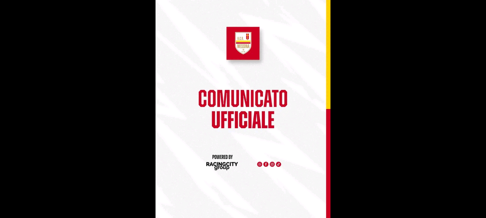 “La società ACR Messina, ringrazia mister Alessandro Parisi e Domenico Bombara per il prezioso supporto fornito in queste settimane alla prima squadra”. Lo riferiscono i responsabili della Società Racing City Group, proprietari della Squadra calcistica menzionata, in una nota odierna diffusa sulla Pagina Facebook ‘ACR Messina’ (https://www.facebook.com/a.c.r.messinaofficialpage).