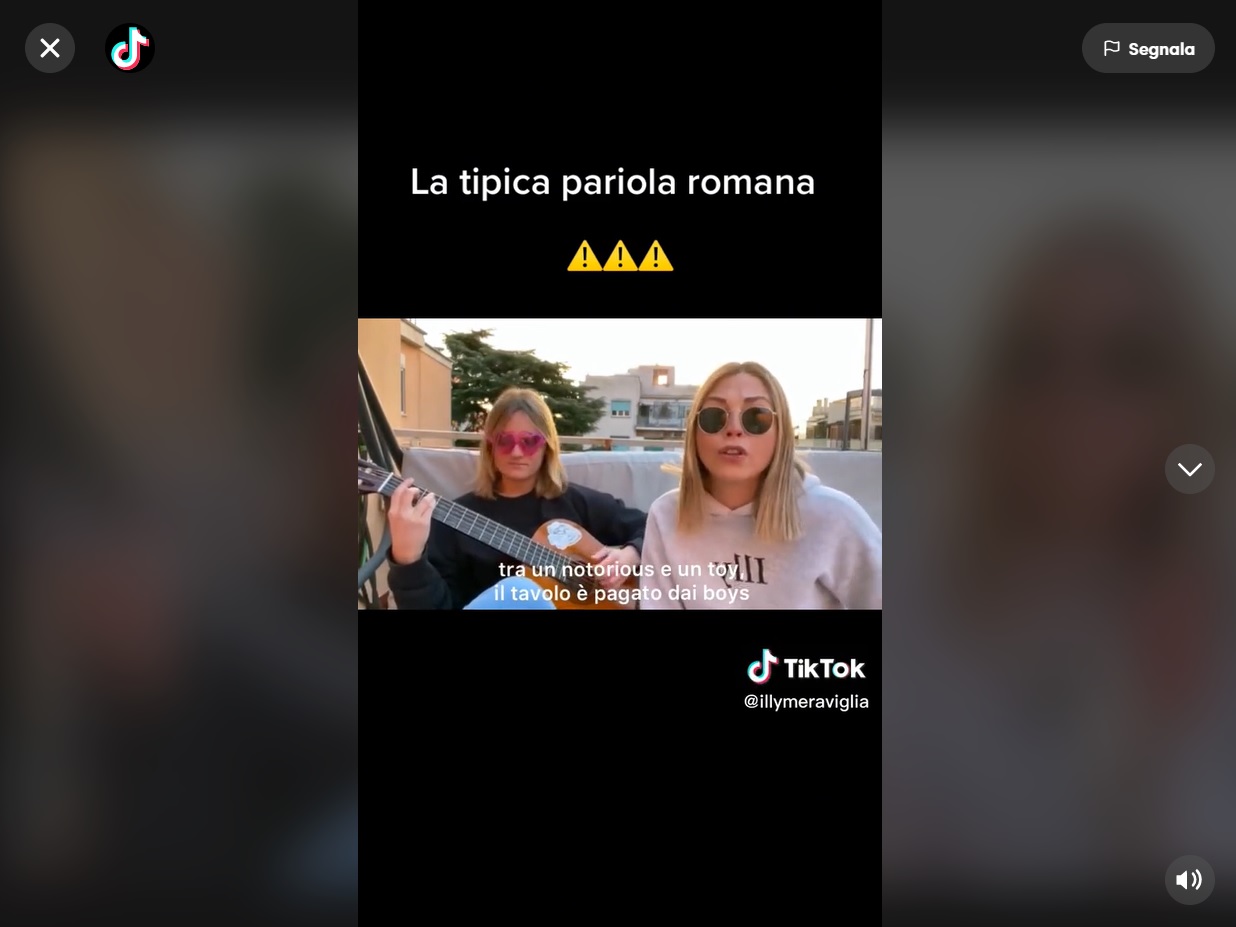 “La tipica pariola romana”. E’ il titolo del filmato postato nelle scorse ore…, sul Profilo di www.tiktok.com de ‘Le stereo-tipe’, due #tiktoker di Roma che con la loro canzone uniscono il Nord, il Centro ed il Sud della Capitale italiana.