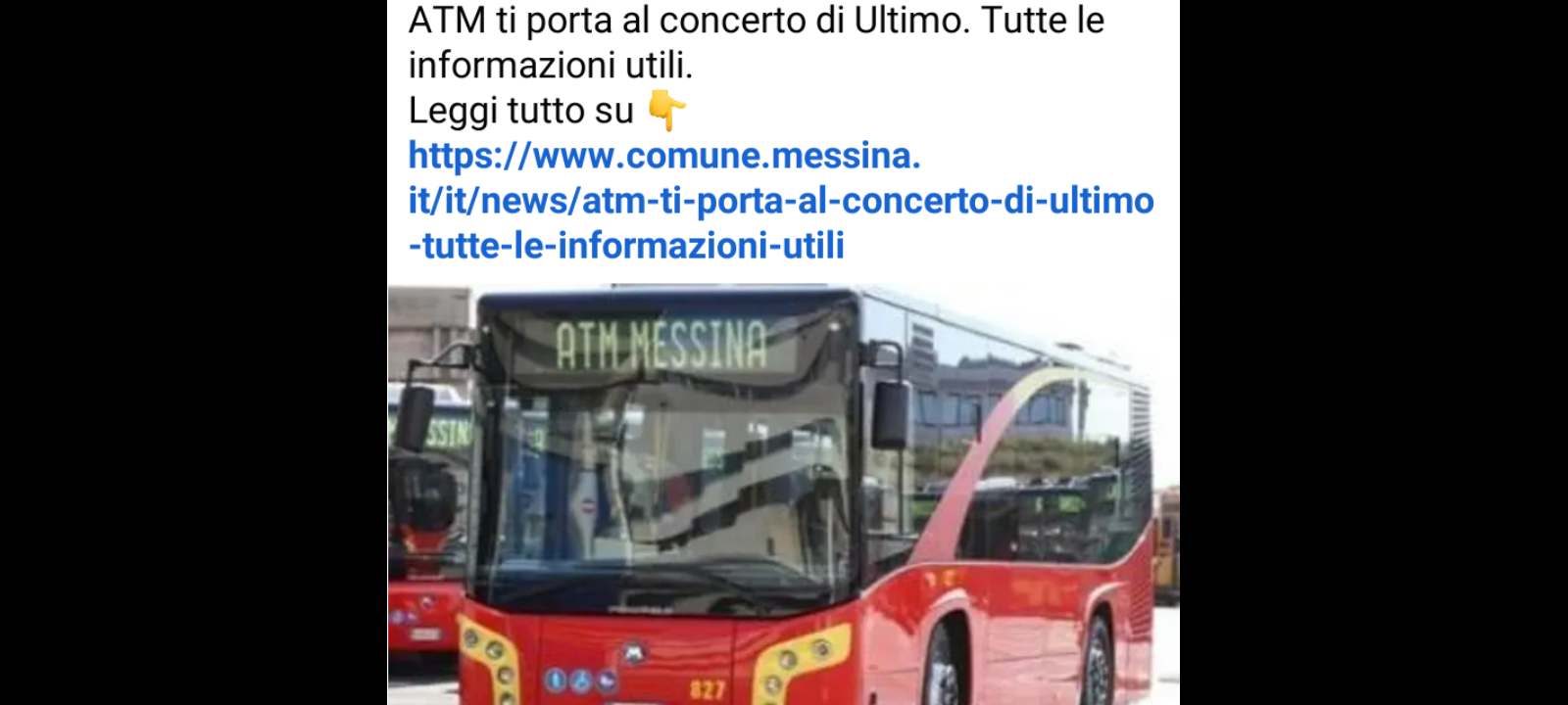 La tournée estiva di Ultimo è pronta a sbarcare in riva allo Stretto a Messina… il cantautore romano, particolarmente apprezzato dalle giovani generazioni, si esibirà venerdì 18 luglio alle ore 21.00… allo stadio Franco Scoglio: in occasione del concerto, ATM attiverà un piano straordinario per agevolare i collegamenti con l’impianto sportivo.