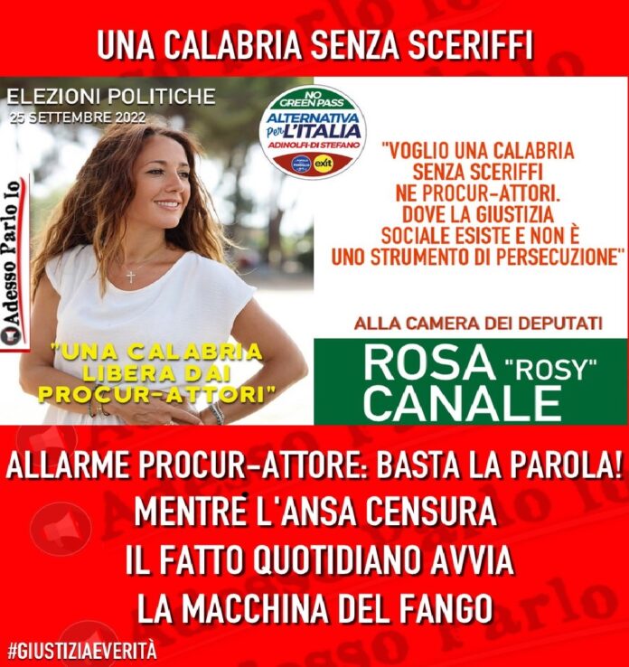 Lo ha specificato oggi 27 agosto 2022 sulla sua Pagina Facebook ‘Adesso parla Rosy’, la blogger Rosa detta Rosy Canale che il prossimo 25 settembre sarà presente nelle Liste di ‘Alternativa per l’Italia’ la formazione politica costituita nei mesi scorsi da Mario Adinolfi (Il Popolo della Famiglia) e Simone Di Stefano (Exit):