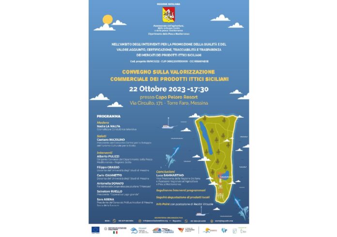 ‘La valorizzazione dei prodotti ittici locali e gli interventi strategici per la promozione della qualità e del valore aggiunto dei mercati siciliani: É il tema del convegno che si terrà presso il Capo Peloro Resort (Via Circuito, 171 – Torre Faro, Messina), a partire dalle 17.30 promosso dall’assessorato regionale dell’Agricoltura, dello Sviluppo rurale e della Pesca Mediterranea-Dipartimento della Pesca Mediterranea, per la promozione della qualità e del valore aggiunto, della certificazione, della tracciabilità e della trasparenza dei mercati dei prodotti ittici siciliani (Cod. progetto 59/MCO/22) e realizzato in collaborazione con l’Associazione Bios di Messina’. L’evento sarà un’occasione per discutere delle opportunità nel settore ittico e delle peculiarità e della biodiversità del territorio Peloritano, grazie ad esperti di settore, docenti universitari e imprenditori locali.