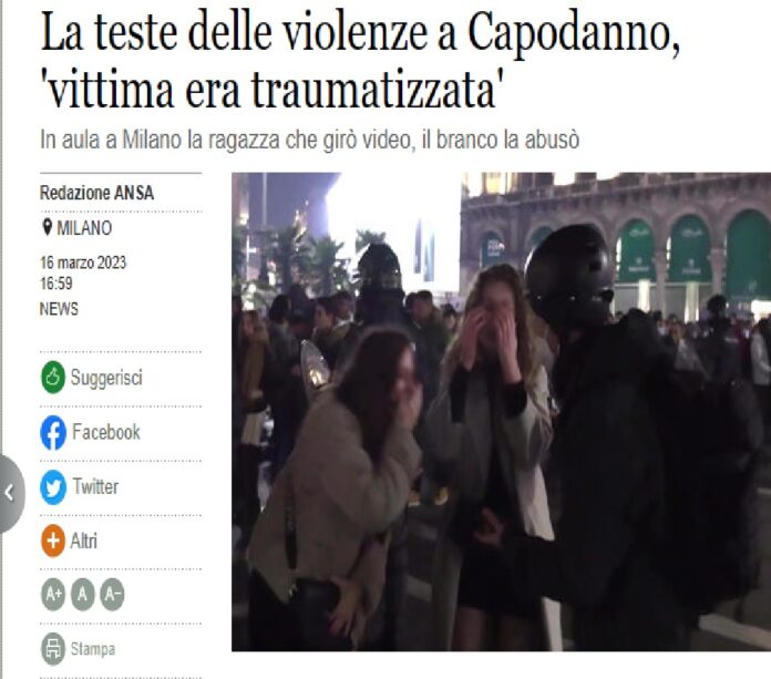 “L’ho vista a terra seminuda, si teneva stretto addosso il giubbotto, aveva solo quello, era traumatizzata e piangeva, non si reggeva nemmeno in piedi per la paura: ho provato anche a farle scudo con le braccia ma erano troppi, un branco di almeno una ventina”. Così la ragazza che realizzò l’ormai noto video su una delle tante aggressioni sessuali nella notte di Capodanno del 2022 in piazza del Duomo, a Milano, ha descritto, sentita in aula come testimone, le violenze sessuali subite da una 19enne all’angolo con via Mazzini. Ossia l’episodio più grave e brutale tra quelli accertati nell’inchiesta milanese della Squadra mobile e del pm Alessia Menegazzo.