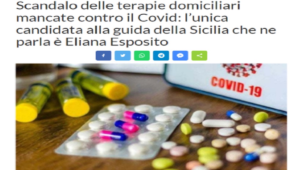 Mentre senza esagerare, in piccole dosi – in dosi televisive omeopatiche, si potrebbe dire – il Governo dei Migliori di Mario Draghi e Roberto Speranza (il Ministro che faceva parte di un partito ‘alla sinistra’ del PD oggi candidato-paracadutato a Napoli nel PD: gli elettori napoletani del PD se lo meritano tutto, il Ministro Speranza) propone, per l’Autunno, il vaccino anti-Covid con la variante Omicron (come fanno a sapere che in Autunno non ci saranno altre varianti?) mentre la scienza ufficiale ammette che sì, il Covid si può curare con gli anti-infiammatori prima banditi per fare posto ai vaccini (li avevano acquistati e li dovevano ‘smaltire’…), c’è un candidato alla presidenza della Regione siciliana che ha il coraggio di parlare delle terapie domiciliari contro il Covid bandite dal Ministero di Roberto Speranza (candidato a Napoli alle elezioni politiche pur non essendo napoletano, quindi paracadutato). Si tratta di Eliana Esposito, di Siciliani Liberi, che sullo scandalo delle terapie domiciliari per curare il Covid ostacolate dal Governo dei Migliori dice: