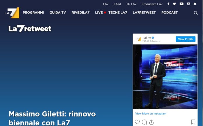 Accordo firmato tra Massimo Giletti e La7: per i prossimi due anni il giornalista sarà sempre al timone del suo programma “Non è l’Arena”, che quest’anno debutterà in autunno nella nuova collocazione al mercoledì sera in prime time.