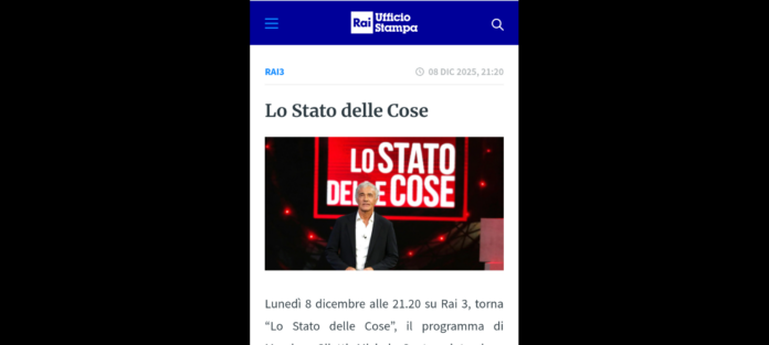 ‘Michele Santoro interviene sullo scenario internazionale, alla luce del nuovo scontro tra Donald Trump e l’Unione Europea e dell’escalation militare in corso tra conflitto russo-ucraino e guerra ibrida – parlano, poi, le vittime di una truffa ai danni dei pensionati avvenuta nella sede del patronato Inca Cgil Svizzera. E si cercano risposte sul fallimento di una società di servizi legata alla Cgil che ha lasciato dietro di sé debiti ancora inevasi. Quali sono le responsabilità del Sindacato in queste vicende? – Per il confronto politico scendono in campo il presidente del Partito Democratico Stefano Bonaccini e il capogruppo alla Camera di Fratelli d’Italia Galeazzo Bignami – La nuova inchiesta sul delitto di Garlasco, intanto, arriva ad un punto cruciale: il Dna sulle unghie di Chiara Poggi è riconducibile ad Andrea Sempio? Confronto tra la genetista Marina Baldi, consulente della difesa di Sempio e il genetista Pasquale Linarello, consulente della difesa di Stasi. E poi l’intervista all’avvocato di Sempio, Liborio Cataliotti, sulle ultime indiscrezioni della Procura di Pavia che parla di “plurimi indizi” a carico del nuovo indagato’. Sono questi, alcuni degli argomenti de “Lo Stato delle Cose”, il programma di Massimo Giletti che torna lunedì 8 dicembre alle 21.20 su Rai3.