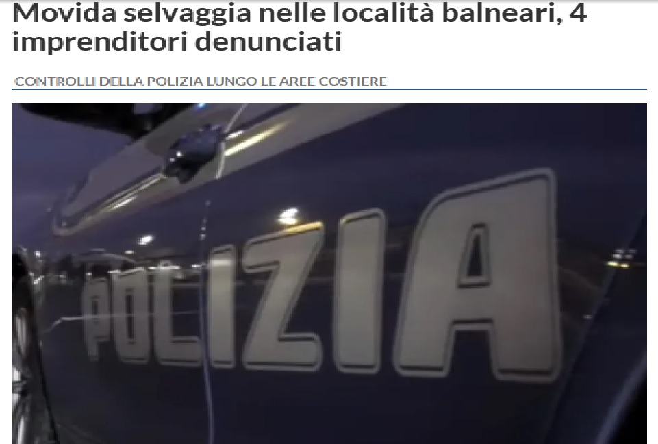 Movida selvaggia nelle località balneari del Trapanese, 4 gestori di lidi e bar denunciati per gravi violazioni: la Polizia ha passato al setaccio le attività dell’area costiera ed ha trovato di tutto… dai bar e lidi trasformati in discoteche, alla musica a palla che disturbava la quiete pubblica. I controlli sono stati portati avanti nel corso del mese di luglio coinciso con il potenziamento dell’attività della Polizia di Stato per la prevenzione e repressione degli illeciti penali ed amministrativi. In particolare grande attenzione è stata posta alle violazioni alle prescrizioni imposte dalle autorizzazioni di Polizia rilasciate dal questore della provincia di Trapani.