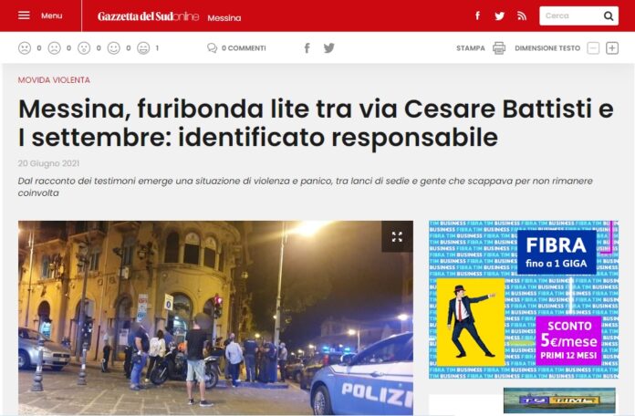 Nel corso della notte appena trascorsa, a Messina tra le vie Cesare Battisti e I° Settembre si è verificata una furibonda lite nei pressi di un locale simbolo della movida peloritana.