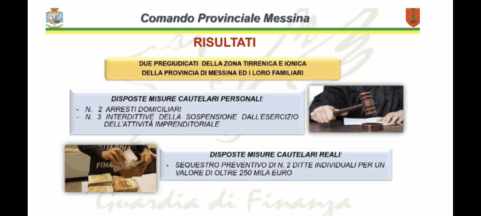 Nell’ambito di un’operazione Antimafia condotta dalla Guardia di Finanza di Messina, su delega dei membri della Direzione Distrettuale Antimafia, questa mattina cinque persone sono state raggiunte da provvedimenti cautelari e sequestri patrimoniali. Due indagati sono stati posti agli arresti domiciliari, mentre tre hanno subito l’interdizione dall’esercizio di attività imprenditoriali. Contestualmente, è stato disposto il sequestro preventivo del complesso aziendale legato a un distributore di carburante con annesso bar e rivendita di tabacchi, operante a Tortorici, per un valore complessivo superiore ai 250.000 euro. Le misure sono state adottate sulla base di un grave compendio indiziario relativo al reato di intestazione fittizia di beni e trasferimento fraudolento di valori (art. 512-bis c.p.).