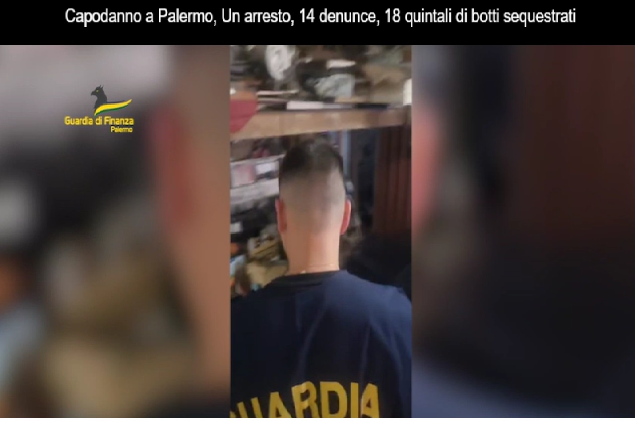 Nelle ultime ore i finanzieri del Comando provinciale di Palermo in vista della notte di Capodanno…, hanno: arrestato una persona, denunciato 14 persone e sequestrato 18 quintali di botti e fuochi d’artificio illegali tra cui le “bombe del presidente”.