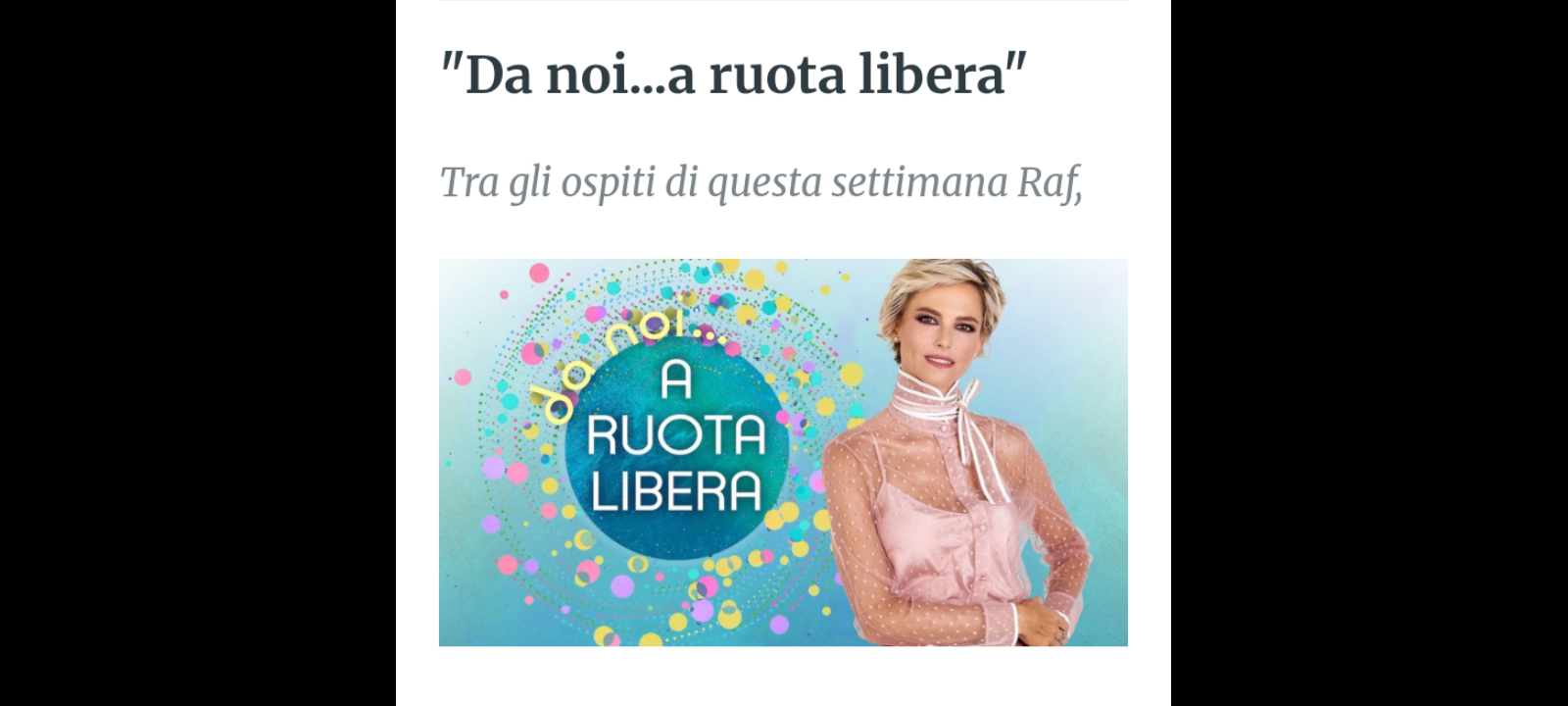 - Raf, che festeggia i suoi 40 anni di carriera e di successi con il tour di concerti “Self Control 40th”;