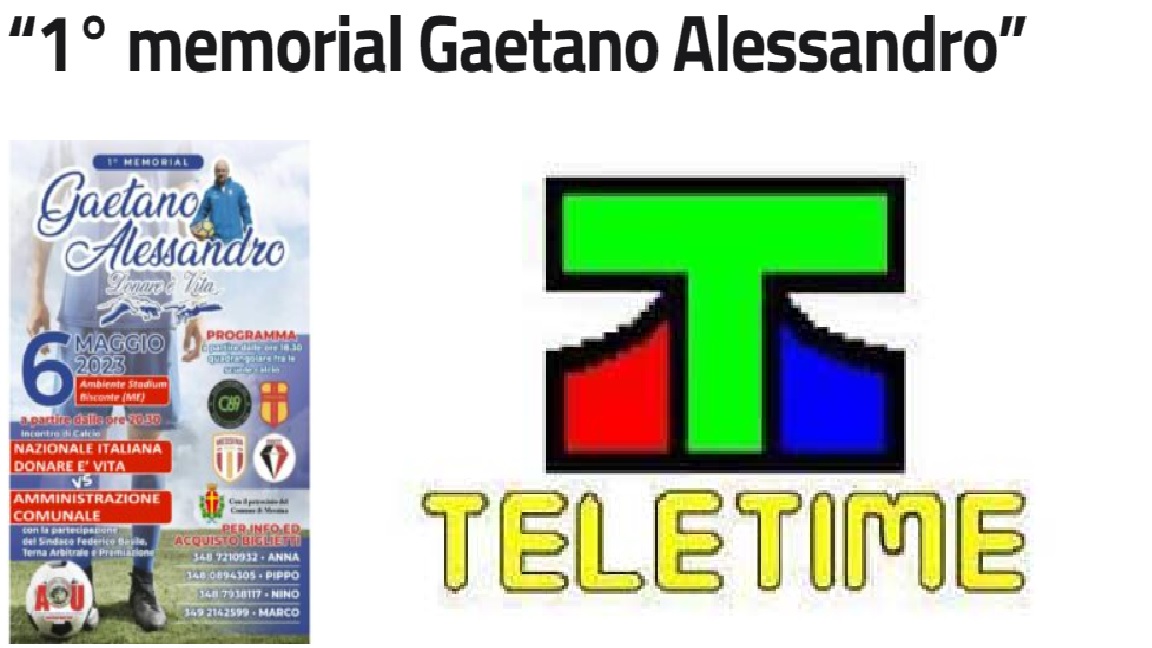 Oggi, sabato 6, alle ore 20.30, presso l’Ambiente Stadium di Bisconte, patrocinato dal Comune di Messina, si svolgerà il “1° memorial Gaetano Alessandro”, partita di beneficienza tra la nazionale italiana donatori organi e l’amministrazione comunale guidata dal sindaco Basile.
