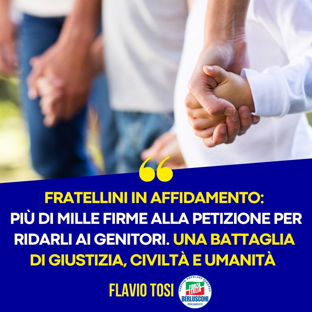 “Più di mille persone hanno sottoscritto la petizione per restituire ai genitori i due fratellini di Verona di 13 e 8 anni, per i quali il Tribunale per i minorenni di Venezia a giugno ha confermato l’affidamento in una casa-famiglia, nonostante la madre a novembre fosse stata assolta con formula piena dall’accusa di maltrattamenti”. Lo ha evidenziato nei giorni scorsi, sulla propria omonima Pagina Facebook, Flavio Tosi, il deputato veronese di Monte Citorio a Roma, afferente al Gruppo di Forza Italia.