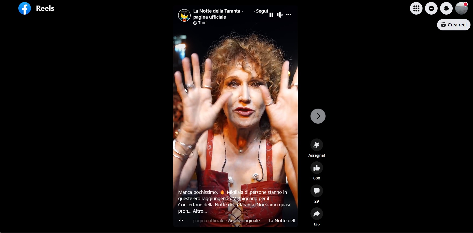 LO HA EVIDENZIATO OGGI 26 AGOSTO 2023 SULLA SUA OMONIMA PAGINA FACEBOOK, LA CANTANTE FIORELLA MANNOIA RIFERENDOSI ALLA MANIFESTAZIONE DENOMINATA... 'LA NOTTE DELLA TARANTA'