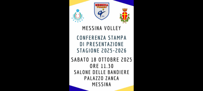 “Sabato 18 ottobre 2025 alle 11.30, si terrà la conferenza stampa di presentazione della stagione 2025-26 del Messina Volley”. Lo si evince, da una nota diffusa nelle ore scorse dai responsabili della Associazione Sportivo Dilettantistica che è proprietaria della Squadra… Messina Volley.