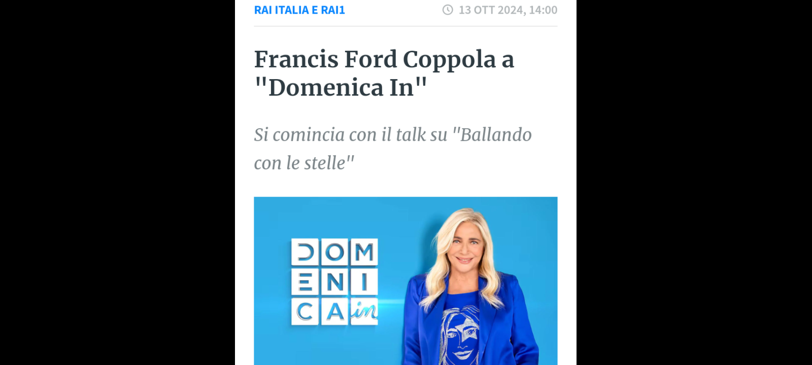 Grande attesa, inoltre, per l’arrivo in studio del regista vincitore di ben sei Premi Oscar, Francis Ford Coppola, che interverrà per presentare il suo ultimo film “Megalopolis”, del quale è regista e coproduttore, in uscita nelle sale cinematografiche il 16 ottobre.