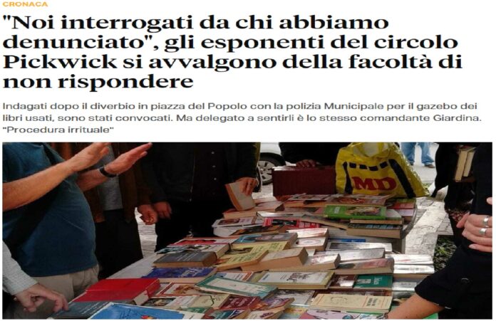 “C’è sembrato irrituale – spiegano Callegari e Ciraolo – nominare inquirente lo stesso attore della denuncia peraltro denunciato anche da noi, poiché sulla vicenda del tentativo di sequestro dei libri del Circolo Pickwick si confrontano la versione fornita da noi con quella dello stesso comandante Giardina, le quali si contrappongono. A nostro parere, non solo questo passaggio, ma l’intera vicenda del Circolo Pickwick merita un’attenzione finora mancata, perché non è finita per caso in Tribunale”.