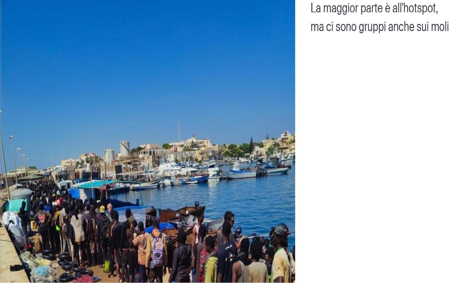 Sono 6.792 i migranti presenti sull’isola di Lampedusa: la maggior parte si trova all’hotspot di contrada Imbriacola, ma più gruppi sono in attesa in vari punti, soprattutto sui moli.
