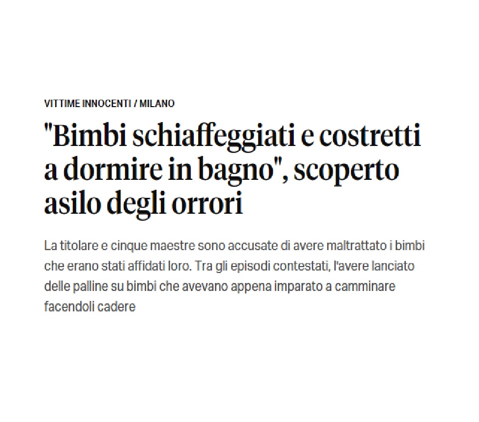 Secondo le indagini, alcuni bimbi, anche a causa del sovrannumero all’interno della struttura, venivano messi a dormire nei bagni o su materassi in un salone, “talvolta completamente avvolti nelle coperte fin sopra alla testa”. Se in preda al pianto, venivano ignorati “anche per mezz’ora” o chiusi nella stanza della nanna “finché smettevano”.