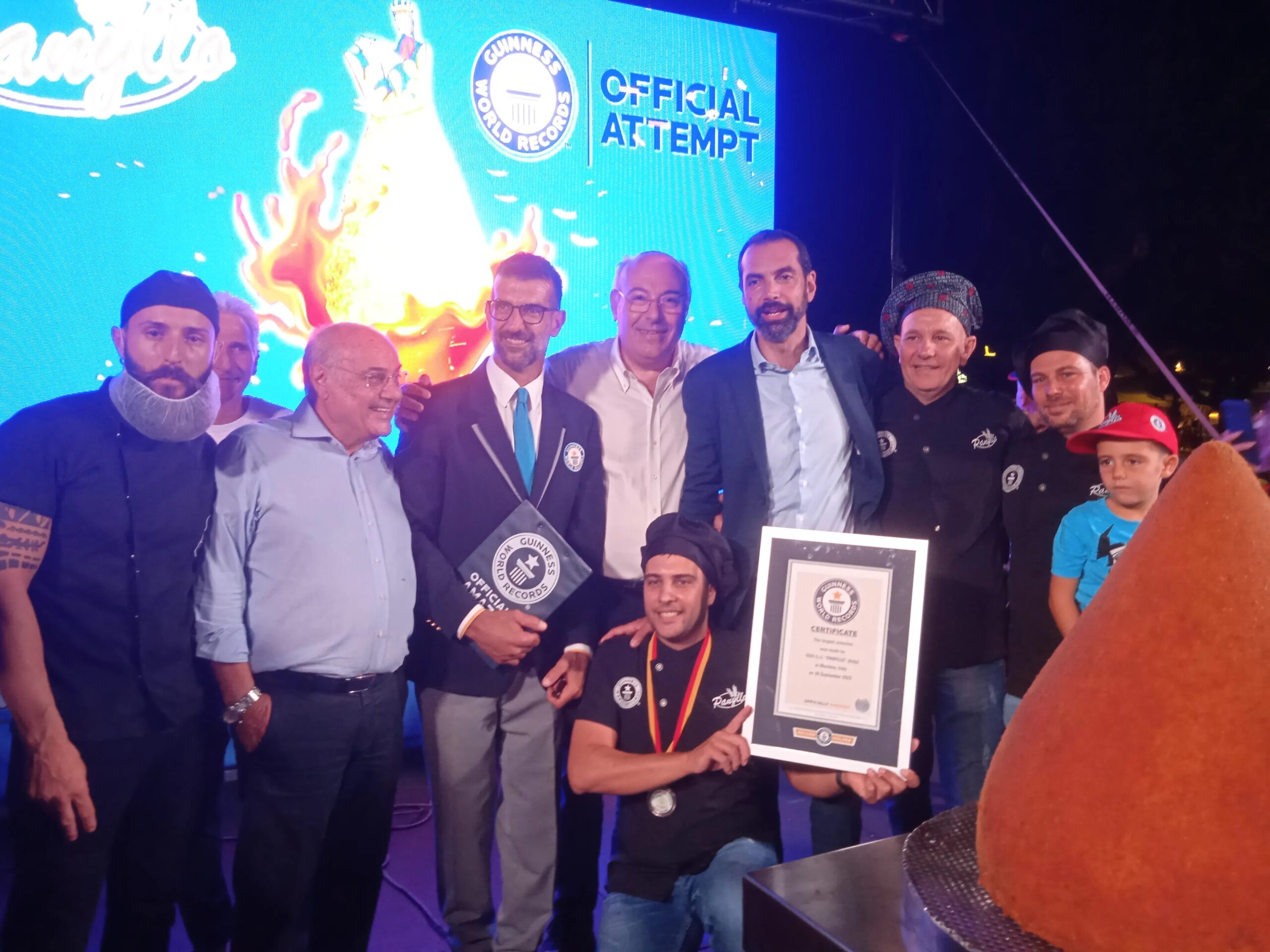 Il titolo è stato assegnato da Lorenzo Veltri, giudice del Guinness World Records, noto per la sua partecipazione alla trasmissione di Canale 5 Lo Show dei Record, con Gerry Scotti: il Megarancino ha raggiunto il peso di Kg 56,200 per 60 cm di altezza e 55 cm di diametro, superando ampiamente il precedente record di 32,7 Kg ottenuto nel 2019 a Catania.