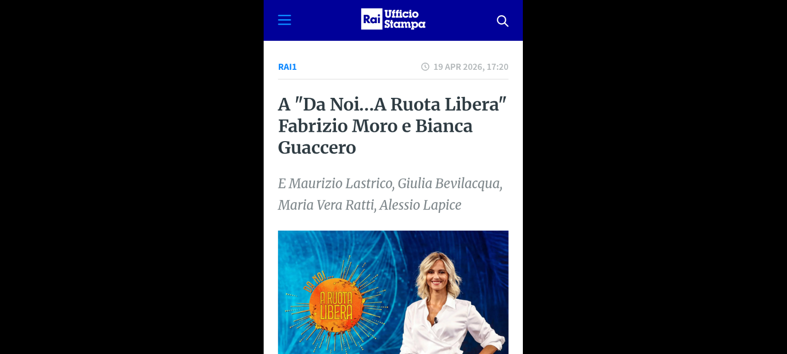 Torna domenica 19 aprile 2026, “Da Noi… a Ruota Libera”, in onda alle ore 17.20 su Rai1. “Da Noi… a Ruota Libera”, è una trasmissione condotta da Francesca Fialdini.