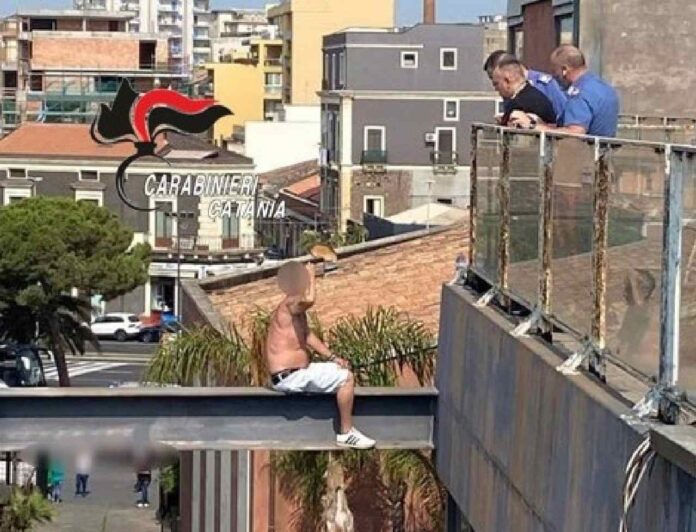 A notare l’uomo sono stati alcuni passanti, che insospettitisi dalla figura in lontananza di un individuo chiaramente scosso e a torso nudo, seduto con le gambe sospese nel vuoto su una struttura in ferro che sporgeva diversi metri dalla palazzina, senza nessun tipo di vincolo, hanno subito dato l’allarme, chiamando il N.U.E. (Numero unico di emergenza, ndr) 112.