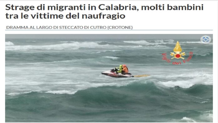 Tragico naufragio di migranti a Cutro (Crotone): il bilancio, ancora provvisorio, parla di 33 morti, tra cui molti bambini e molte donne. Il peschereccio sul quale si trovavano si è spezzato in due in mare.