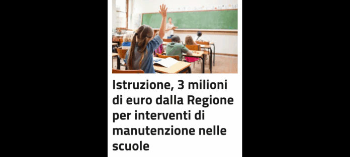 ‘Tre milioni di euro sono stati destinati dalla Regione Siciliana a interventi urgenti di manutenzione straordinaria nelle scuole siciliane: lo stabilisce una circolare attuativa dell’assessorato regionale dell’Istruzione e formazione professionale che dà il via libera al finanziamento complessivo e stabilisce le modalità per la richiesta delle somme’.