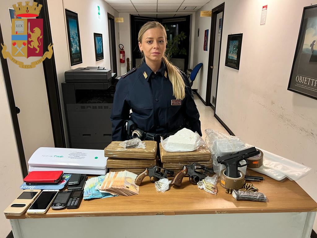 Insieme alla droga e alle armi i poliziotti hanno sequestrato anche 3 bilance di precisione, 1 macchina per il sottovuoto, 1 agenda di colore verde riportante il quantitativo di stupefacente, cifre e nomi, 7.900 euro trovati in un comodino, 2 telefoni cellulari e 46 gr di hashish trovati nel garage nella disponibilità dell’uomo.