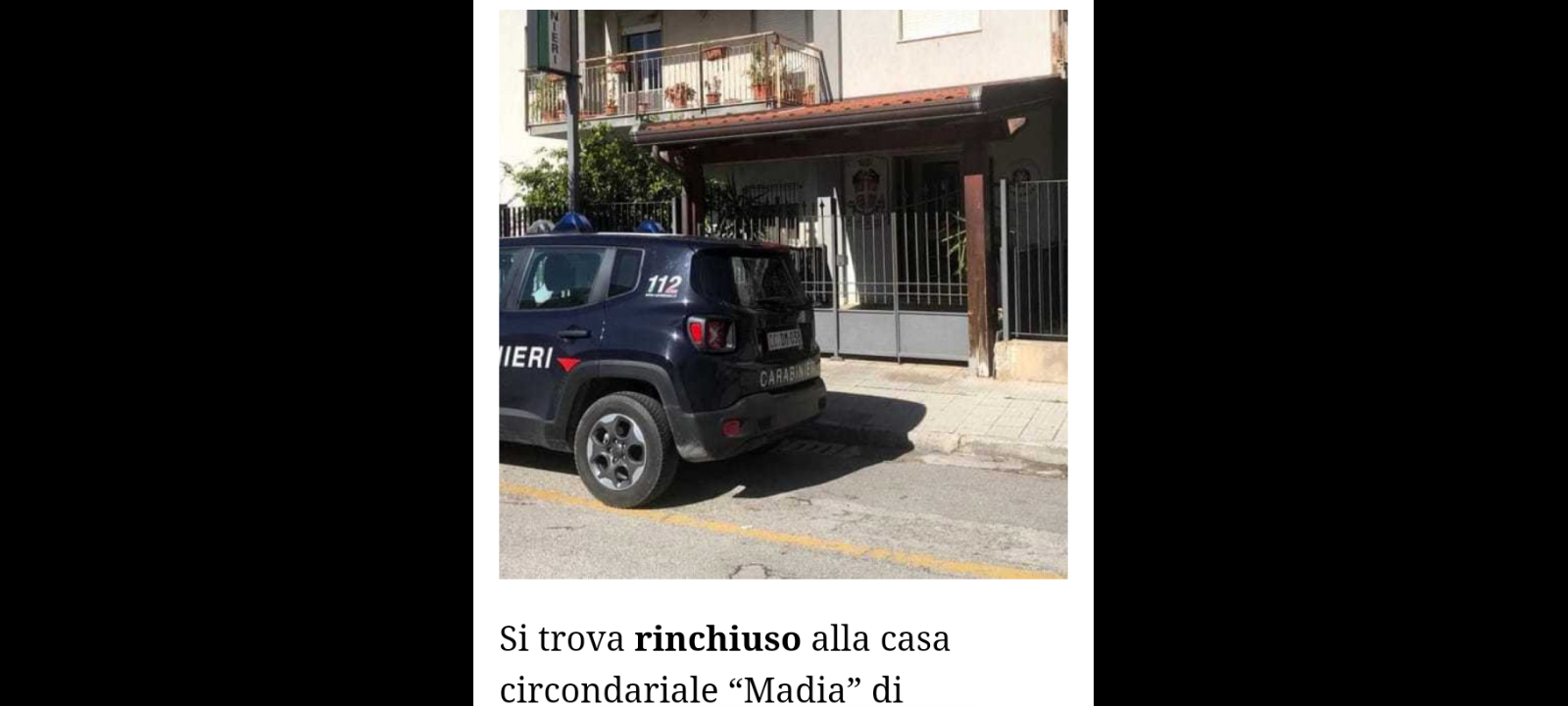 Un extracomunitario indiano di 35 anni, arrestato poche sere fa dai carabinieri a Capo d’Orlando…, si trova rinchiuso alla casa circondariale “Madia” di Barcellona Pozzo di Gotto, con l’accusa di violenza sessuale: questa è una notizia che è trapelata solo ieri. I fatti sarebbero accaduti nei pressi della scala davanti all’ingresso della stazione ferroviaria, intorno alle 20, quando una ragazza, residente a Milazzo, dopo avere svolto una giornata lavorativa occasionale a Capo d’Orlando, attendeva il treno per fare ritorno a casa.