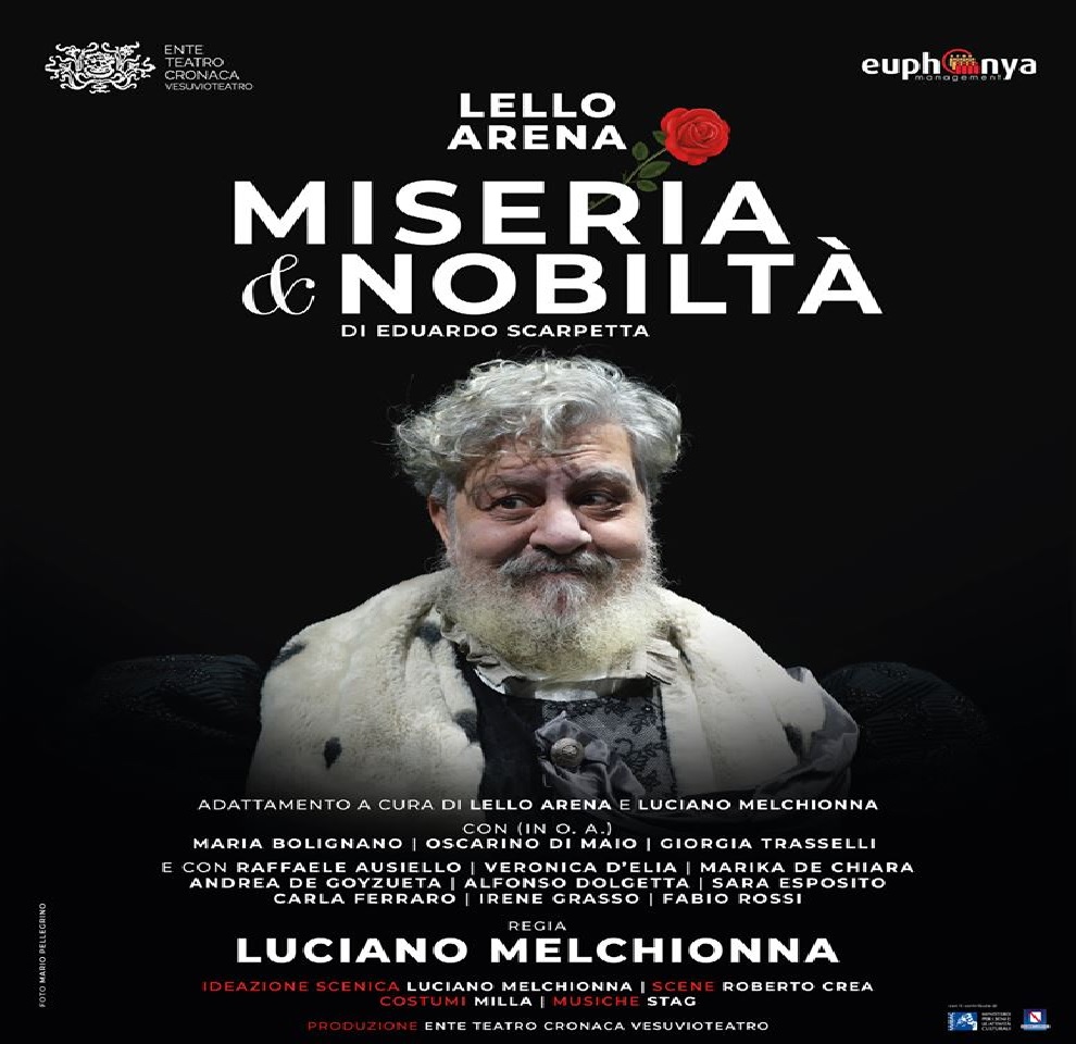 Manca pochissimo ormai per lo spettacolo “Miseria e nobiltà”, che vede protagonista l’attore Lello Arena e che andrà in scena l’8 e il 9 novembre al Teatro Vittorio Emanuele di Messina. Questo atteso doppio appuntamento con l’intramontabile commedia partenopea, scritta da Eduardo Scarpetta con la regia di Luciano Melchionna, è considerata il Vangelo del teatro napoletano e resa celebre da uno storico film con Totò.
