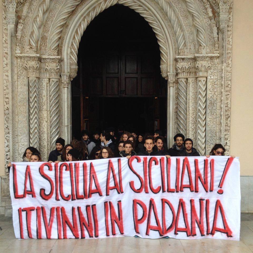 Avendo saputo della odierna visita del leader leghista, Matteo Salvini, in città, alcune centinaia di giovani palermitani, hanno deciso di occupare la Cattedrale del capoluogo regionale. E’ stato esposto infatti, un eloquente striscione di protesta con la scritta: “Itivinni in Padania-La Sicilia ai siciliani”. La presenza di Salvini a Palermo, è caratterizzata infatti da un tour con varie tappe come la visita a Capaci presso la stele posta in ricordo dell’eccidio del giudice Giovanni Falcone, della moglie Francesca Morvillo e degli agenti della scorta, ma anche la deposizione di una corona di fiori alla tomba di Federico II, esistente all’interno del Duomo.