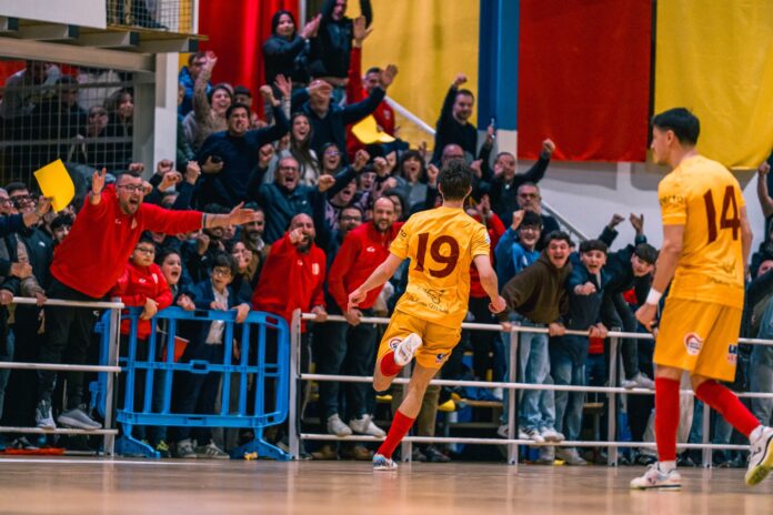 Davanti alla bella e festosa cornice di pubblico proposta dal “PalaLaganà”, i giallorossi, privi dello squalificato capitano Nanni Piccolo, ribaltano l’iniziale vantaggio degli ennesi con i gol di Giuseppe Puglisi e Damiano Saccone. Il millimetrico diagonale dell’argentino Juan Cruz Caropi porta il punteggio sul 3-1 prima dell’intervallo.